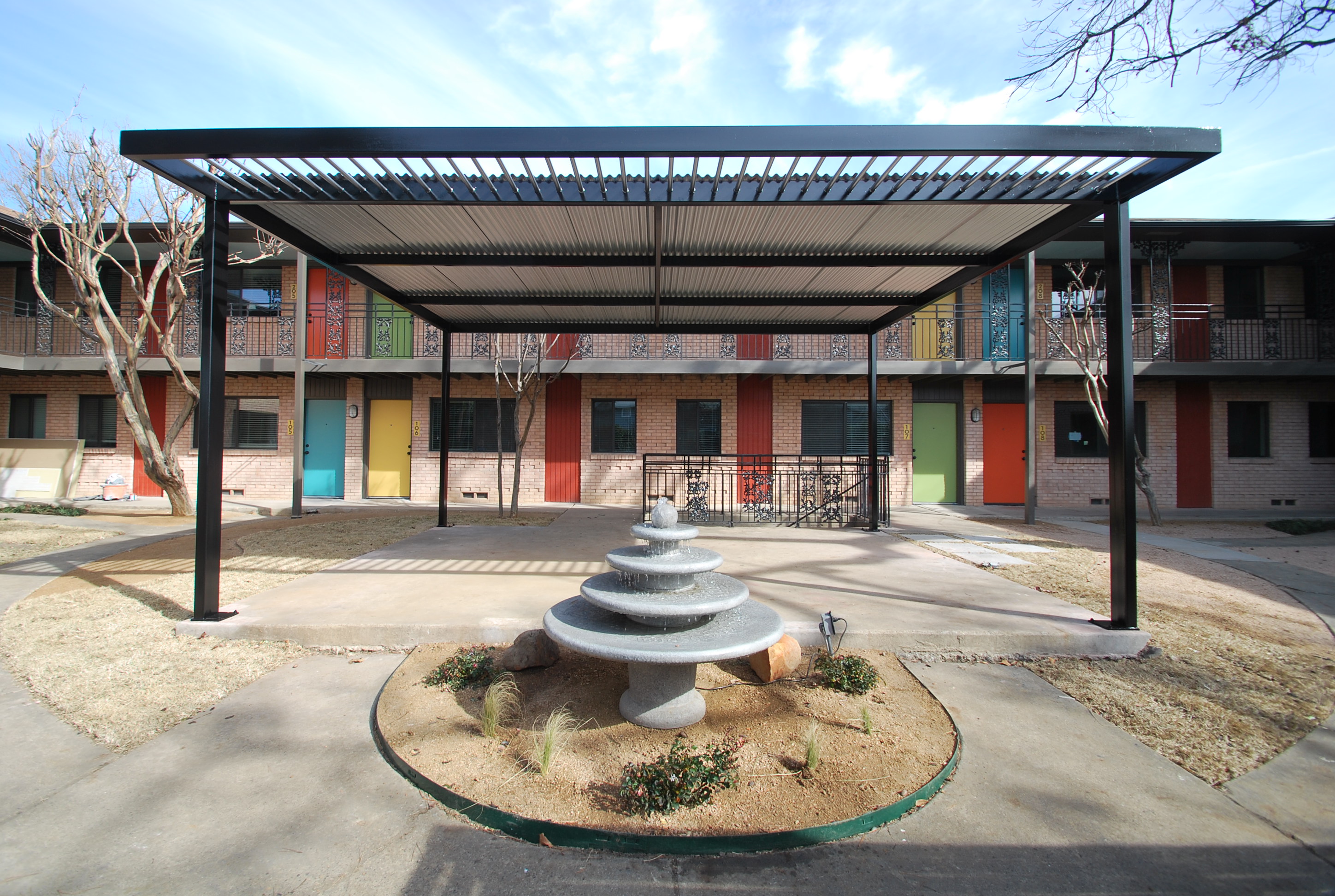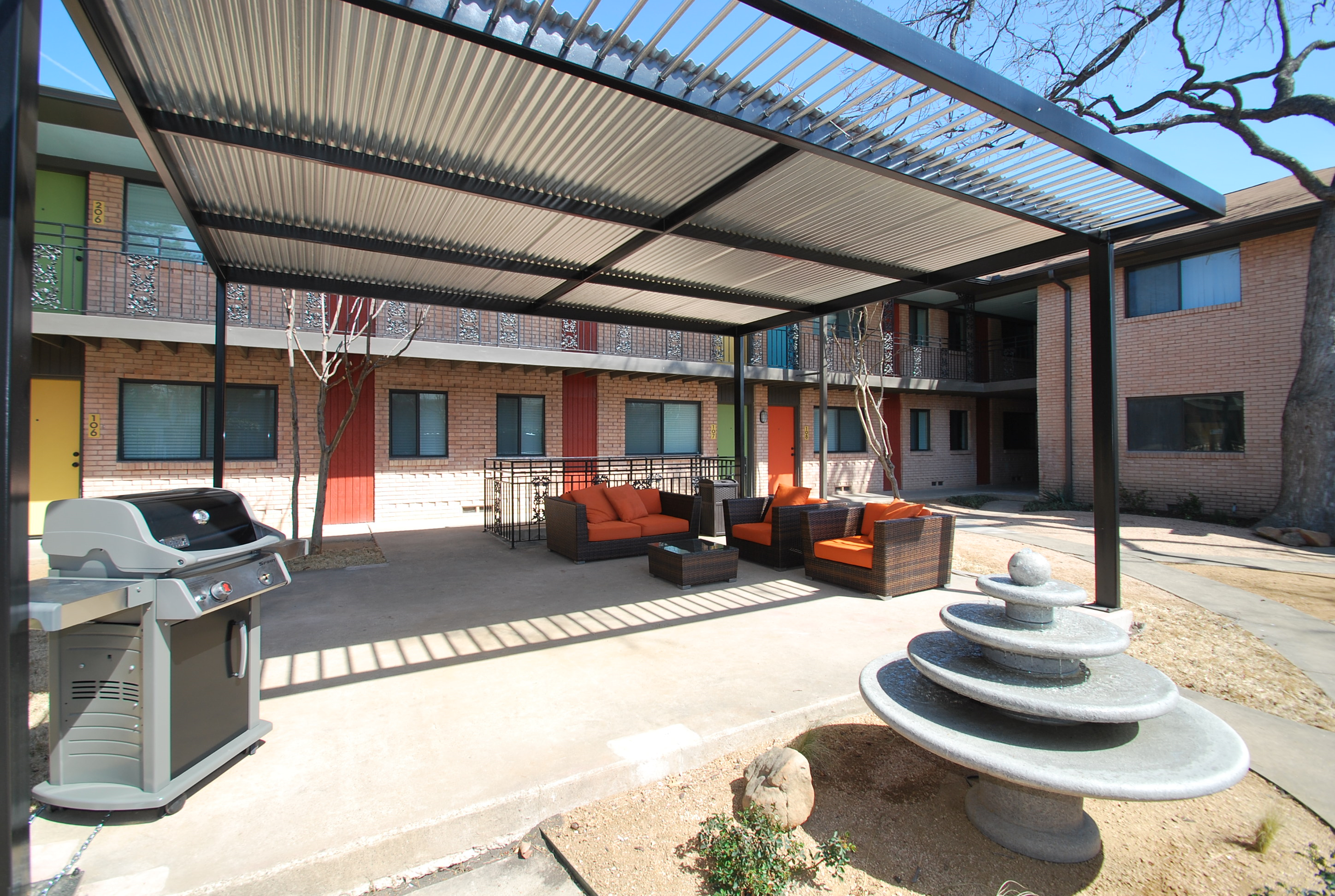 Photos Courtyard Canopy and Fountain Courtyard Kitchen with Granite Countertops Living Area Bathroom Bedroom